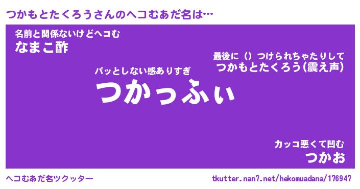 | ポケモン風あだ名 | 『ツカチュウ』『ツカモダネ』 |