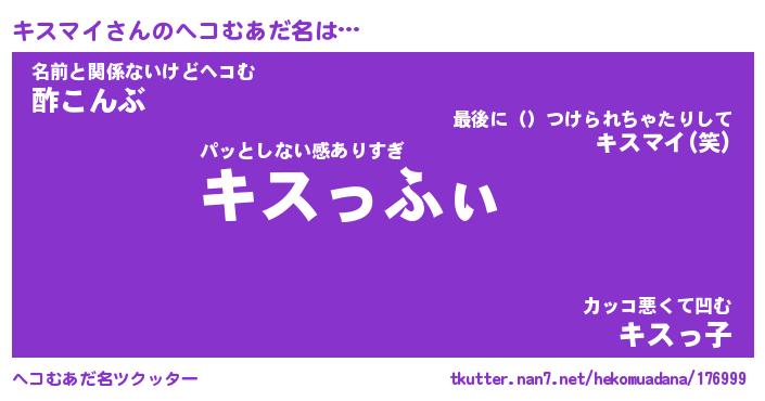 | ファンタジー風あだ名 | 『キスフェル』『エターナルキスマイー』 |
