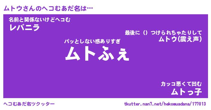 | ポケモン風あだ名 | 『ムトチュウ』『ムトウダネ』 |