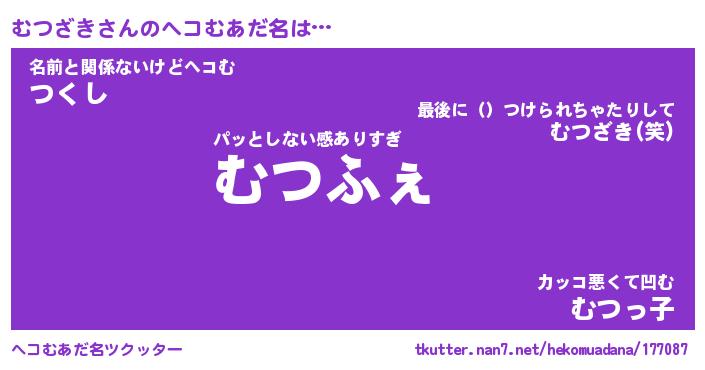 | 2回繰り返すあだ名 | 『むつむつ』『むむつつ』『ぬるぬる』 |
