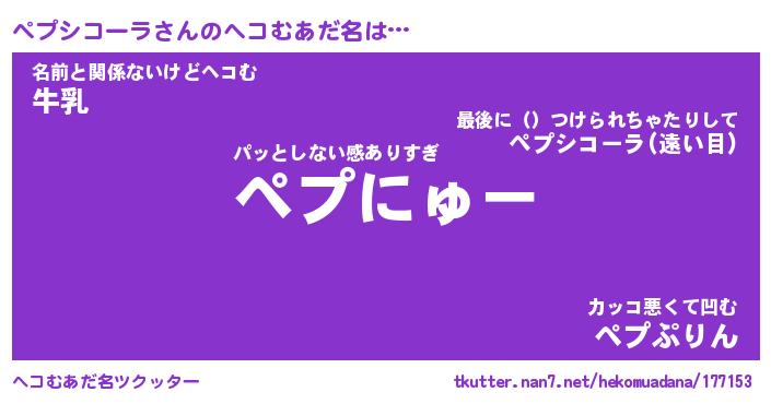 | 男性向けラノベタイトル風あだ名 | 『ペプシコーラアートオンライン』 |