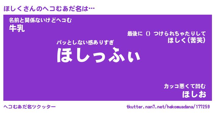 | 意味不明あだ名 | 『ペロリンほしく』『ほしくフォーエバー』 |