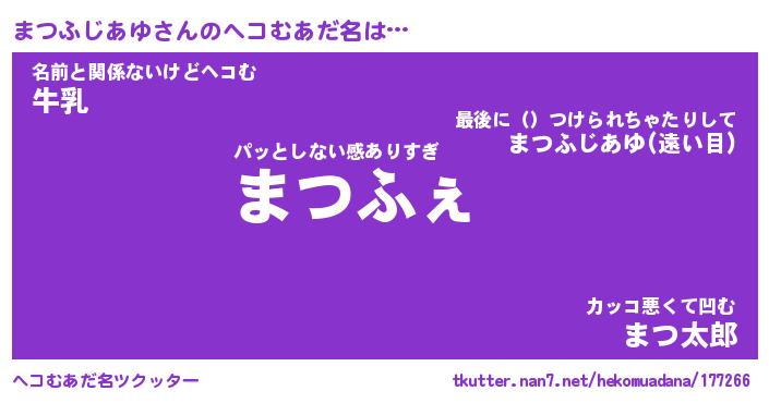 | 胡散臭い通販商品みたいなあだ名 | 『モテモテ間違いなしブレスレット…その名も「まつふじあゆ」』 |