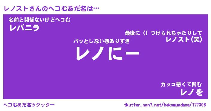 | 意味不明あだ名 | 『ペロリンレノスト』『永久保存レノスト』 |