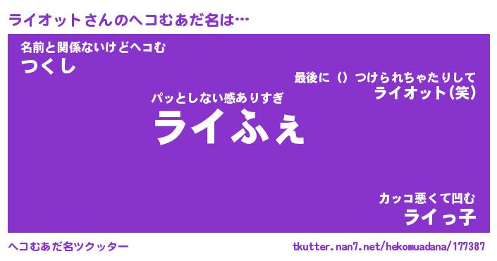 | ファンタジー風あだ名 | 『ライフェル』『エターナルライオットー』 |