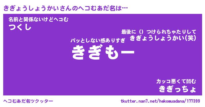 | ポケモン風あだ名 | 『キギチュウ』『キギョダネ』 |
