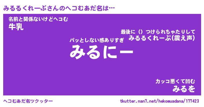 | 胡散臭い通販商品みたいなあだ名 | 『億万長者になれるブレスレット…その名も「みるるくれーぷ」』 |