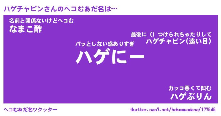 | 男性向けラノベタイトル風あだ名 | 『ハゲチャビンアートオンライン』 |