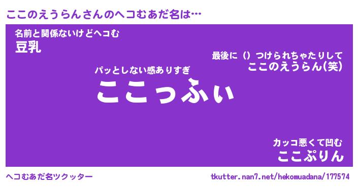 | 意味不明あだ名 | 『ペロリンここのえうらん』 |