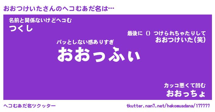 | 欧米人風あだ名 | 『マイケルおおつけいた』 |