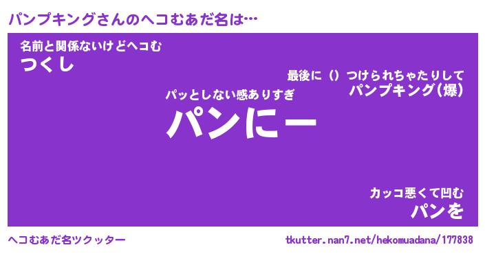 | 男性向けラノベタイトル風あだ名 | 『パンプキングの憂鬱』 |