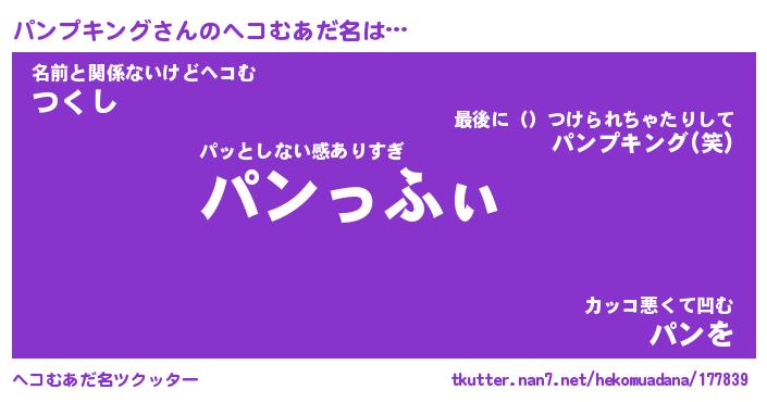 | 男性向けラノベタイトル風あだ名 | 『パンプキングの憂鬱』 |