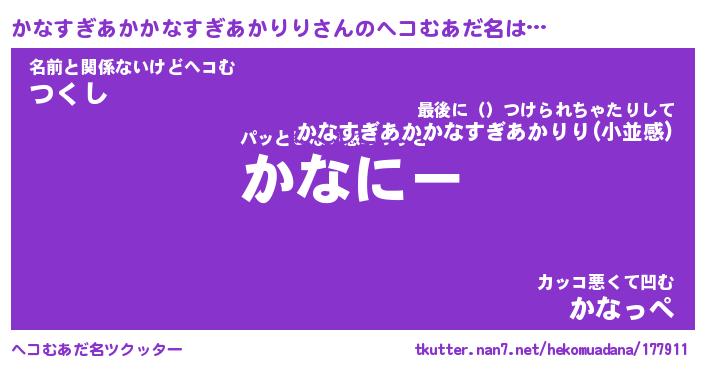 | ヒーロー風カッコイイあだ名 | 『スーパーカナスギアカカナスギアカリリ』 |