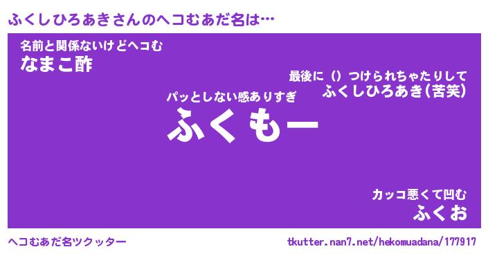 | ヒーロー風カッコイイあだ名 | 『スーパーフクシヒロアキ』 |