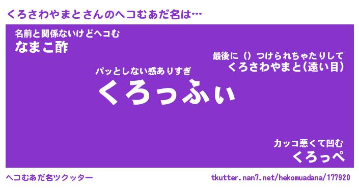 | 意味不明あだ名 | 『ペロリンくろさわやまと』 |