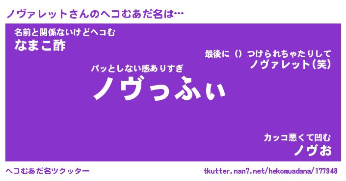 | 2回繰り返すあだ名 | 『ノヴノヴ』『ノノヴヴ』『うるうる』 |