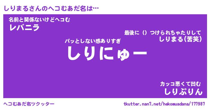| 意味不明あだ名 | 『ペロリンしりまる』『永久保存しりまる』 |