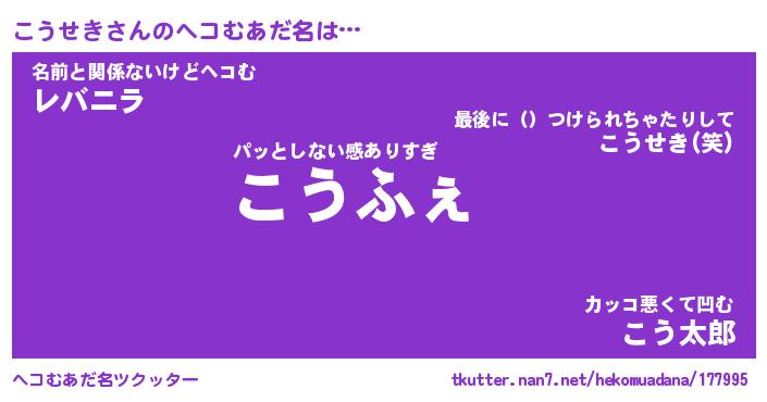 | ファンタジー風あだ名 | 『コウフェル』『エターナルコウセキー』 |
