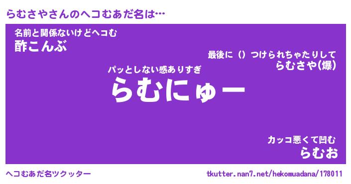 | 意味不明あだ名 | 『ペロリンらむさや』『永久保存らむさや』 |
