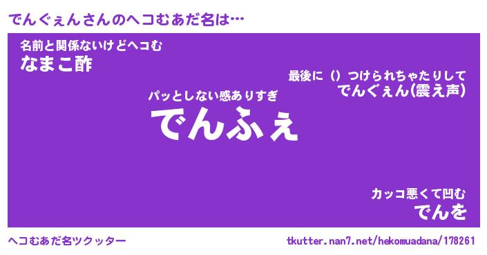 | ファンタジー風あだ名 | 『デンフェル』『エターナルデングェンー』 |