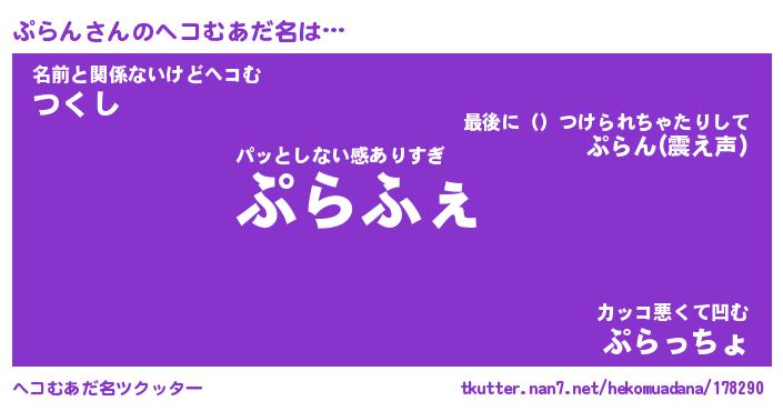 | 男性向けラノベタイトル風あだ名 | 『ぷらんの憂鬱』 |