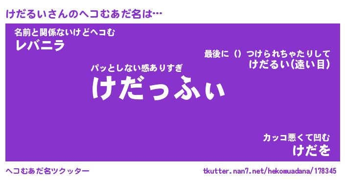 | ファンタジー風あだ名 | 『ケダフェル』『エターナルケダルイー』 |