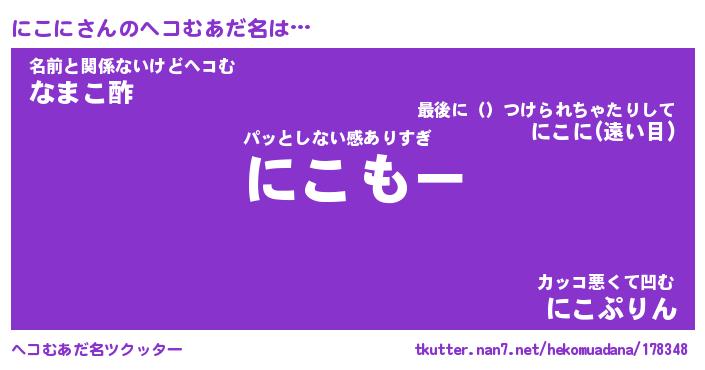 | ポケモン風あだ名 | 『ニコチュウ』『ニコニダネ』 |
