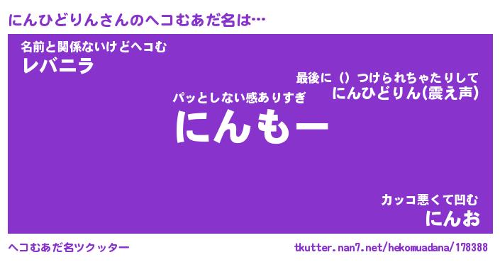| ポケモン風あだ名 | 『ニンチュウ』『ニンヒダネ』 |