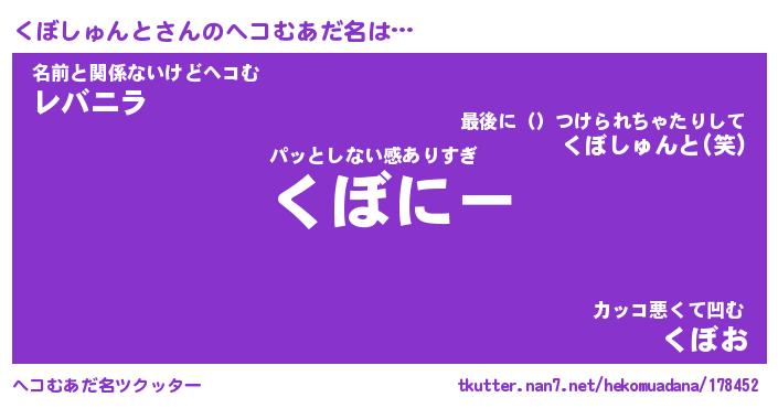 | 男性向けラノベタイトル風あだ名 | 『くぼしゅんとの憂鬱』 |
