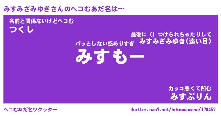 | 男性向けラノベタイトル風あだ名 | 『みすみざみゆきの憂鬱』 |