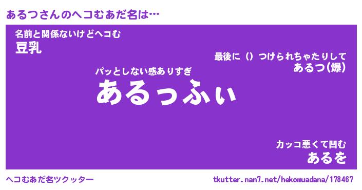 | ヒーロー風カッコイイあだ名 | 『スーパーアルツ』『ウルトラあるつマン』 |