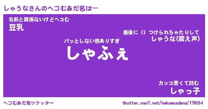 | 男性向けラノベタイトル風あだ名 | 『しゃうなの憂鬱』 |