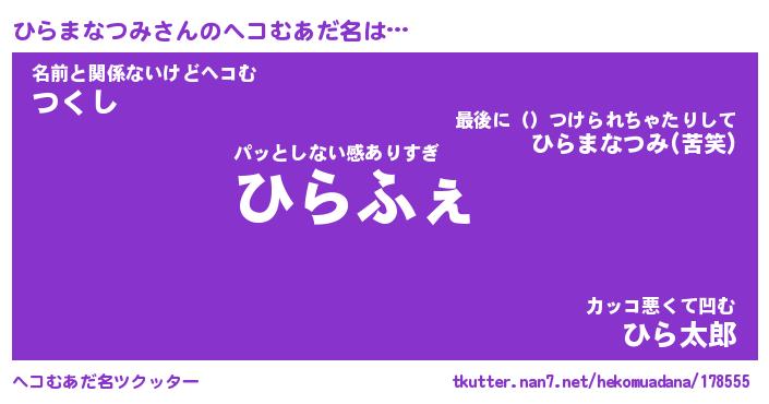 | 恥ずかしいあだ名 | 『プリティーひらまなつみ』『ひらっちょ』 |