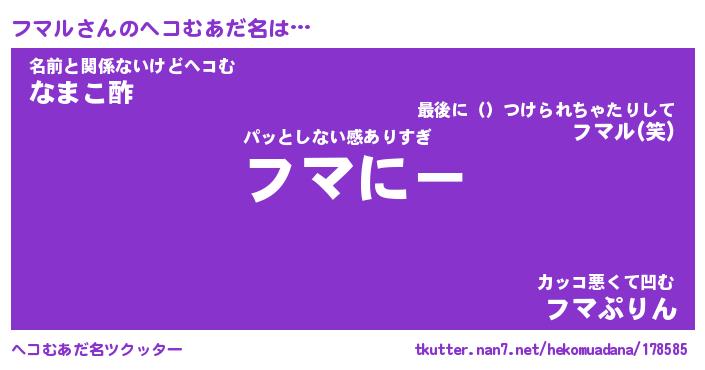 | ポケモン風あだ名 | 『フマチュウ』『フマルダネ』 |