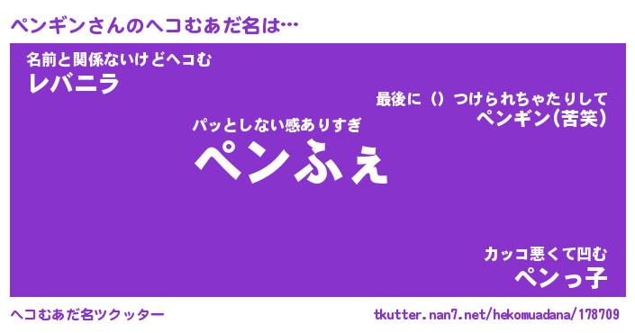 | ヒーロー風カッコイイあだ名 | 『スーパーペンギン』『暗黒騎士ペン』 |