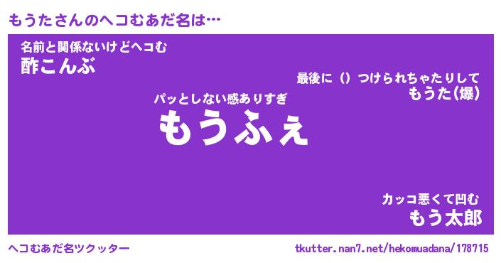 | 意味不明あだ名 | 『ペロリンもうた』『もうたフォーエバー』 |