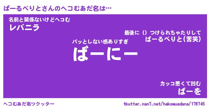 | 男性向けラノベタイトル風あだ名 | 『ばーるべりとの憂鬱』 |