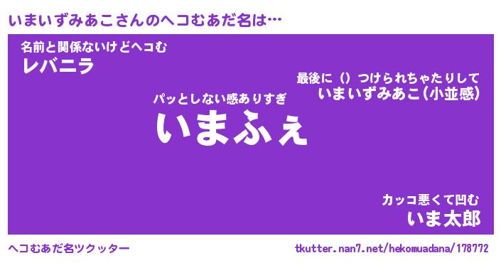 | 意味不明あだ名 | 『ペロリンいまいずみあこ』 |