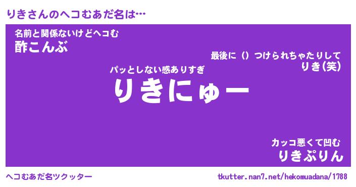 | 2回繰り返すあだ名 | 『りきりき』『りりきき』『ぬれぬれ』 |