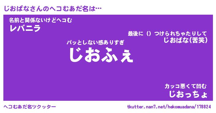 | 意味不明あだ名 | 『ペロリンじおばな』『永久保存じおばな』 |
