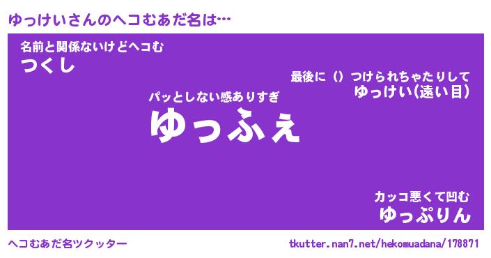 | 意味不明あだ名 | 『ペロリンゆっけい』『永久保存ゆっけい』 |