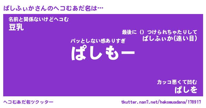 | 意味不明あだ名 | 『ペロリンぱしふぃか』 |