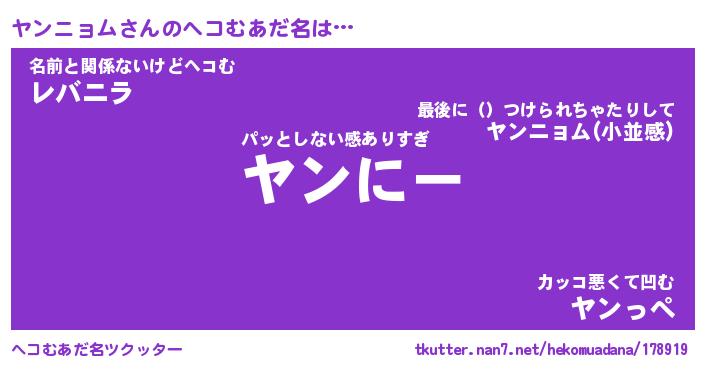 | ポケモン風あだ名 | 『ヤンチュウ』『ヤンニダネ』 |