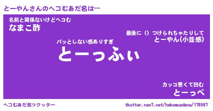 | 胡散臭い通販商品みたいなあだ名 | 『モテモテ間違いなし霊験あらたかなお札…その名も「とーやん」』 |
