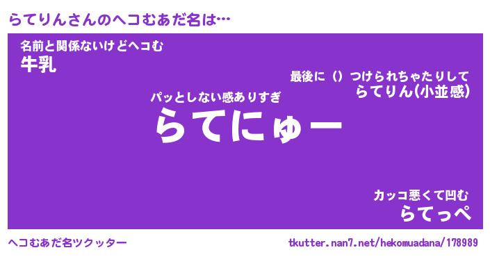 | 意味不明あだ名 | 『ペロリンらてりん』『永久保存らてりん』 |