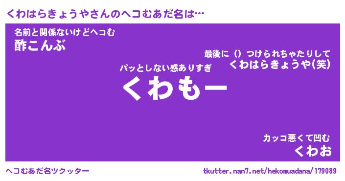 | ヒーロー風カッコイイあだ名 | 『スーパークワハラキョウヤ』 |