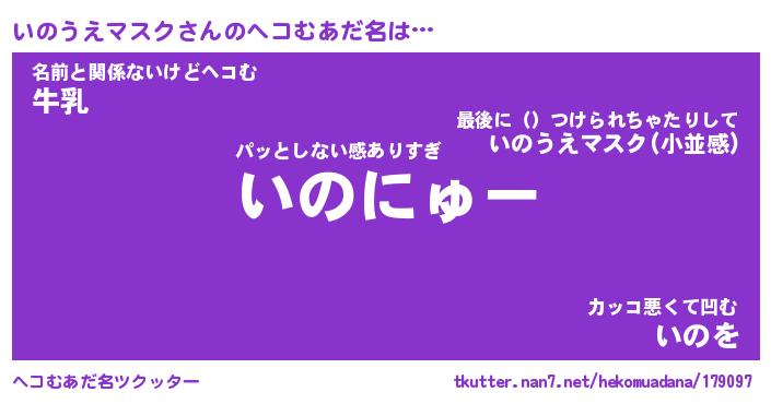 | 男性向けラノベタイトル風あだ名 | 『いのうえマスクの憂鬱』 |