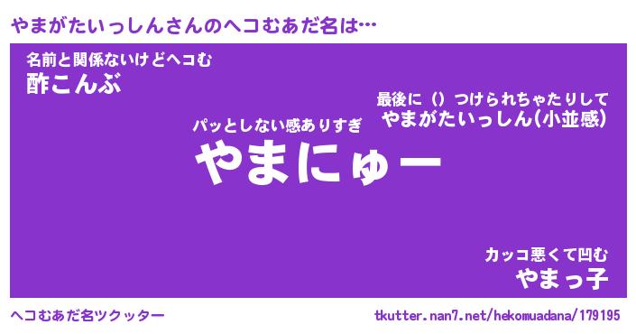 | 自動車の名前っぽいあだ名 | 『ヤマティマ』『ヤクア』『ヤント』 |