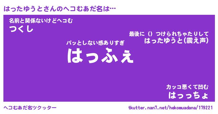 | ヒーロー風カッコイイあだ名 | 『スーパーハッタユウト』『天弓騎士ハッ』 |