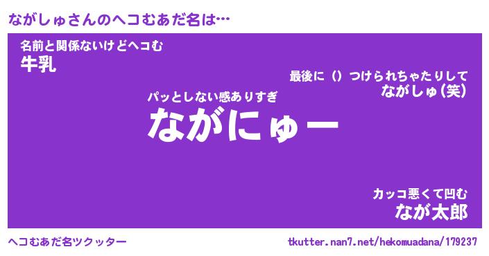 | 意味不明あだ名 | 『ペロリンながしゅ』『永久保存ながしゅ』 |
